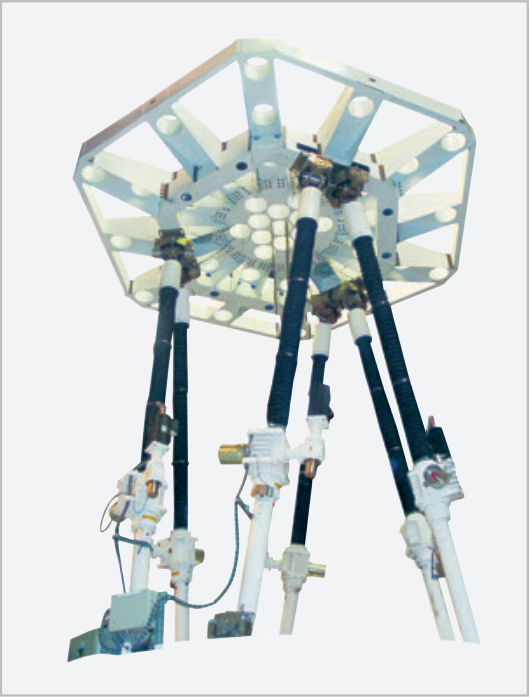 應(yīng)用圖例: VERTEX 天線技術(shù)有限公司射電天文接收器并聯(lián)運動驅(qū)動系統(tǒng), 由6根HSE高性能蝸桿絲杠升降機(jī)組成,升降高度3500mm。該系統(tǒng)用于同一平臺上 數(shù)個射電望遠(yuǎn)鏡的定位。