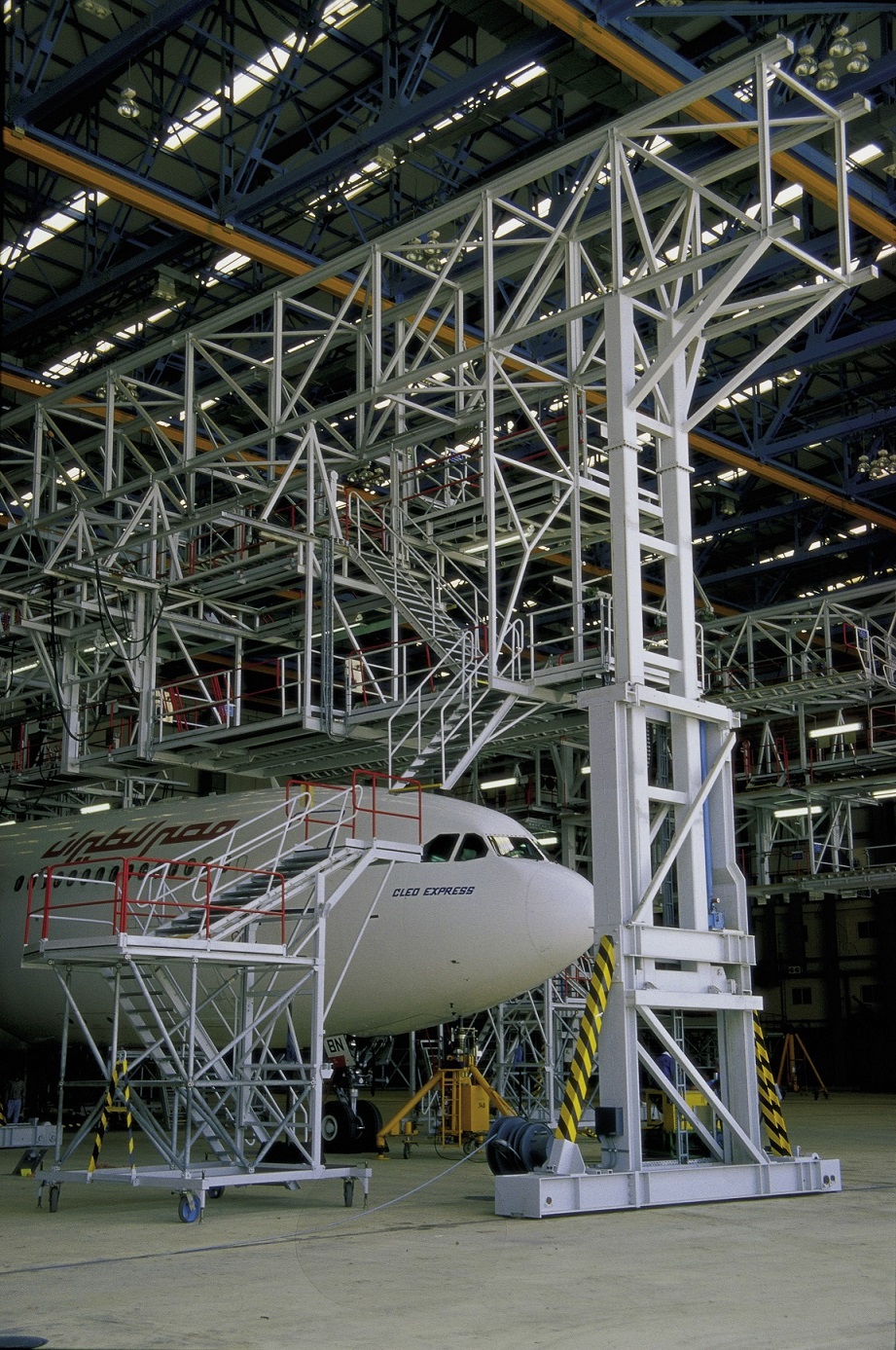 應(yīng)用圖例: Mero Airporttechnik 高性能蝸輪絲杠升降機(jī),用于調(diào)節(jié)飛機(jī)維修平臺的高度。