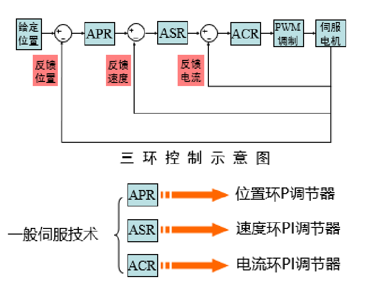 伺服是一個閉環(huán)系統,它是由電流環(huán)、速度環(huán)、位置環(huán)組成,位置環(huán)的輸出作為速度環(huán)的給定,速度環(huán)的輸出又是電流環(huán)的給定。